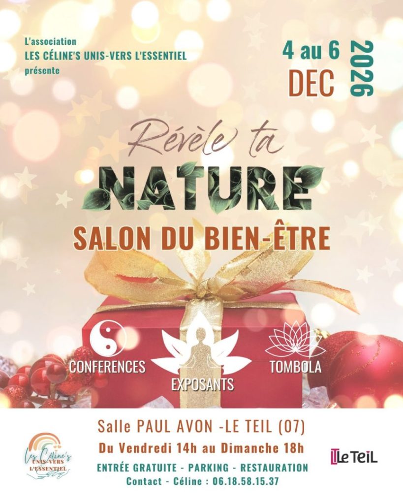 Nous participerons également au Salon du bien-être du Teil du 4 au 6 décembre 2026.